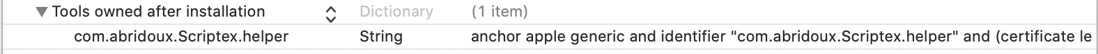 Regarding the plan, the 1st part gives you an overview of the project files. The 2nd tries to cover the required theory around XPC services. The implementation will start at the 3rd part, but if you are only interested in the Helper signature setup, you should go directly to the 4th part. If you do so, you’ll find the project with all the code written in the 3rd part in the Scriptex (code final) folder so that you can jump on the bandwagon.